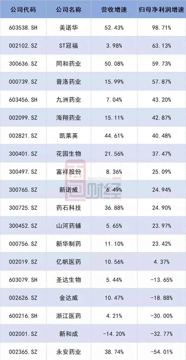 目前8家原料药企业利润增幅超35%,海翔药业相对靠前