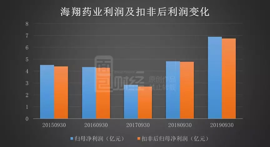 截至10月28日,已公布2019年三季报的原料药企业共有19家,其中有14家企业实现归母净利润增长,8家企业利润涨幅在35%以上。海翔药业42.87%的利润增速处于相对靠前的位置。