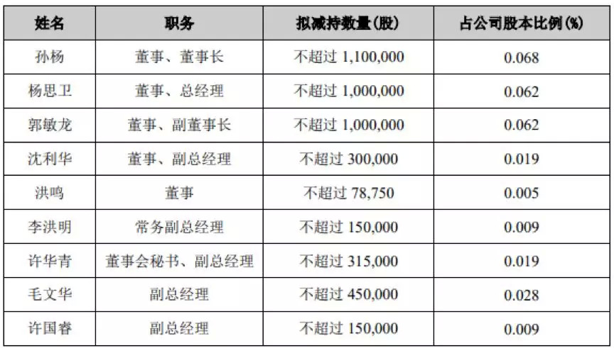2019年6月,公司9位董事及高级管理人员拟减持公司股票,合计减持数量不超过454.38万股,占公司总股本比例0.28%。