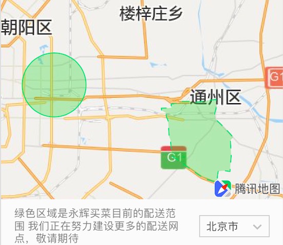 界面新闻注意到,“永辉买菜”APP已于10月26日在北京测试上线,同日上线的还包括西安、深圳、广州3个城市,不过目前上述城市可配送范围还很小,以北京为例,配送范围仅显示通州半壁店附近和东四环的东八里庄一带,且APP目前上线的商品较少,其客服称,商品后续会陆续上线,配送仓也正在筹建中。