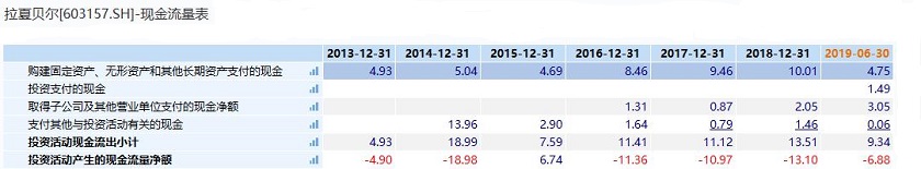 另外,值得注意的是拉夏贝尔的固定资产、无形资产等的账面净值和他们相对应的现金支出存在较大差距,这个问题值得警惕。