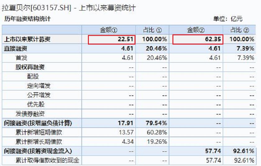事实上,两地上市的拉夏贝尔在融资方面本应具备优势。从2017年A股上市开始算,拉夏贝尔IPO募资4.6亿元,有息债务融资17.9亿元,合计融资22.5亿元。从现金流入的角度看,这两年来拉夏贝尔股权、债权合计融资的现金流入高达62.4亿元。