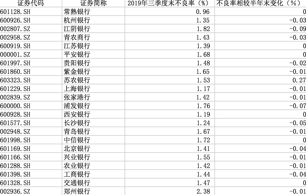 从三季报来看,上市银行资产质量持续好转。wind数据显示,22家上市银行中,有15家三季度末不良贷款率较半年末下滑。