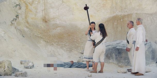 女性老者当场死亡,而男性老者只是摔断了腿,不得已,还得靠其他村民手持木锤把他活生生的敲死。其画面之恐怖,直接令几个都市人现场暴走。