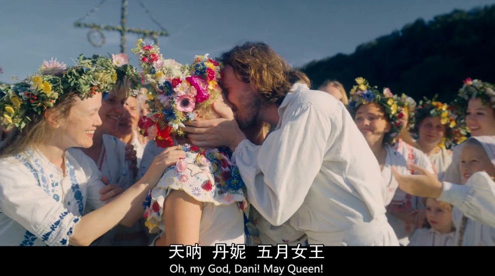 影片的结尾,目睹了男友偷情的丹妮,作为五月节女王,从容地指定了克里斯成为最后一个祭品。看着眼前燃烧起来的熊熊大火,她的脸上露出了诡异的笑容。