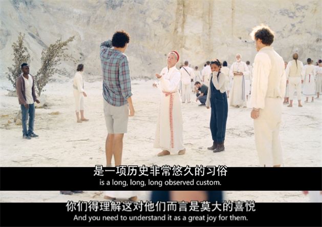 正常人看到这种情景,早就以最快的方式逃走了,可我们的主角却偏偏不走寻常路。学人类学的男主克里斯和黑人小哥乔什,竟然都被悬崖边恐怖的一幕激发了灵感,要将这里的一切当做自己的论文报告。甚至还因为抢选题而发生了争执,差点动手打起来。