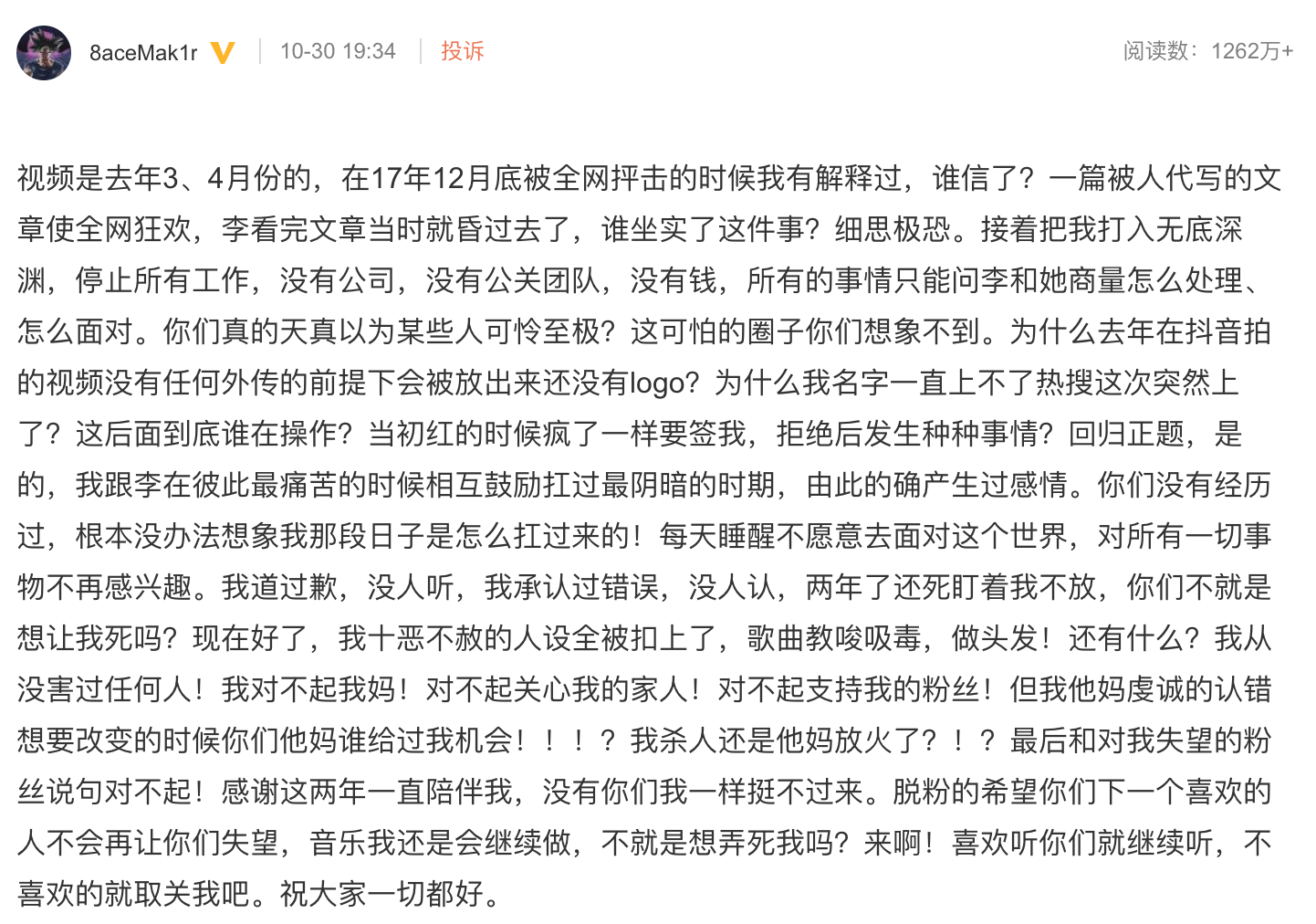 10月30日晚间,一条李小璐和PGone合拍的视频在网络上引起争议。傍晚7点,PGone发表长文回应,称该视频拍摄于去年3、4月,是在“没有任何外传”的前提下被流露出去,且视频在抖音拍摄,但流出来的版本却没有抖音logo,言下之意有暗示视频是从抖音后台泄漏。