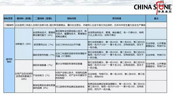 第一个指标是企业的创新能力,包括全球首创技术、研发费用的占比、国际发明专利数。