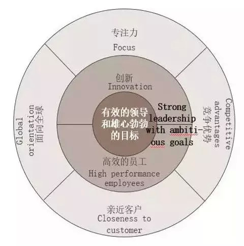 最内环,要有雄心壮志的强力领导者;第二环:有创新能力和高素质、高效率的员工;第三环:这些隐形冠军企业非常专注于做一个细分市场,他们跟客户的距离很近,他们非常忠于客户,他们是以全球化为导向的企业。