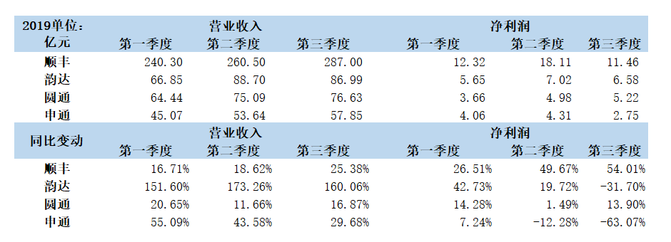 整体上,顺丰与通达系三季度的业绩表现符合预期。其实,不止是顺丰、通达系,快递行业整体都呈现稳中有进的态势。