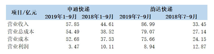 其中,韵达净利润同比下滑亦归因于对快递服务派件模式的调整。但由于营业成本的涨幅略高于营业收入,导致净利润出现同比下滑的趋势。