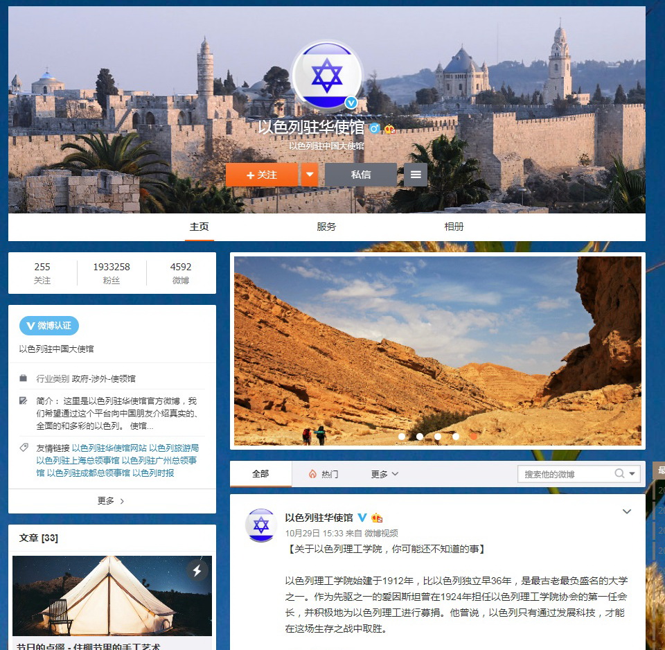 截至发稿,以色列驻华大使馆官网上尚未发布驻华使领馆关闭通知,大使馆官方微博账号也尚未更新发布相关消息。
