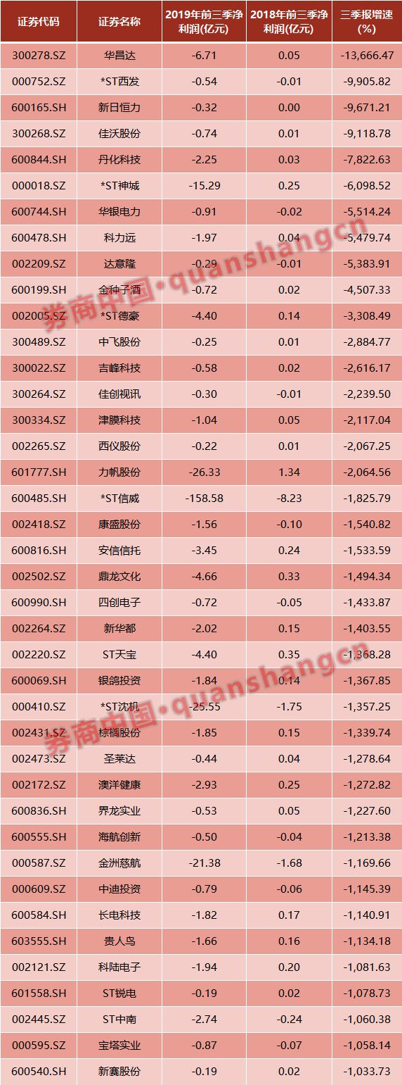 三季业绩滑坡最严重的公司: