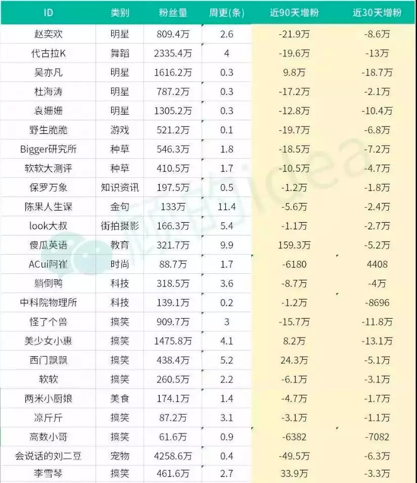 产品以“算法+内容”为靶向,这本无可厚非,但创作者的粉丝属性也随之被弱化。卡思数据显示,今年8月,赵奕欢、两米小厨娘等抖音百万级粉丝的网红,单月掉粉过万。