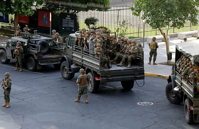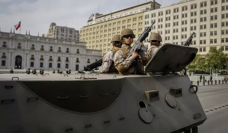 智利当局已经部署了超过10500名军人和警察上街,不少军用坦克也出现在大街上。这是智利自1990年皮诺切特的军事统治结束以来,首次出现这类场景。