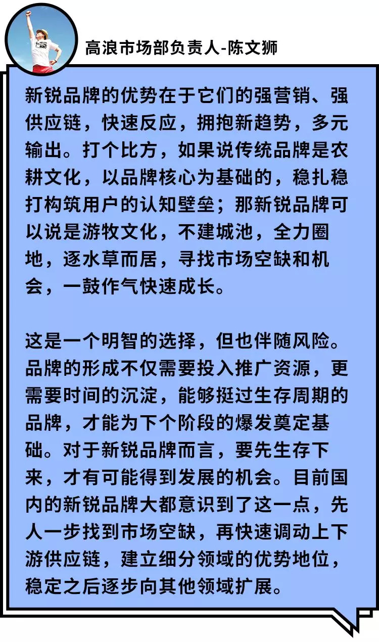 三是新渠道爆发带来流量红利以及打破品牌的传统走红套路,让一个品牌更快实现从0到1。