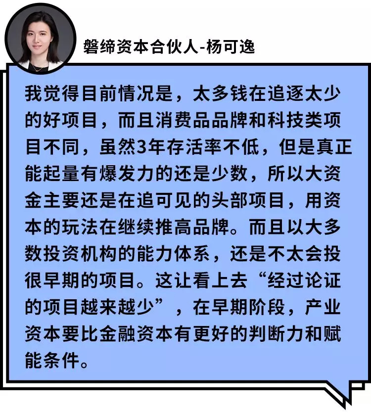 而磐缔资本合伙人杨可逸认为,多数资本在追逐行业里的头部项目,这其实和投资机构本身的特点和能力体系有关。