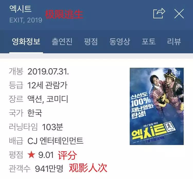 但“流量难”这一困境并不是无解。国内有最近的《少年的你》可以借鉴,韩国其实也有可以学习的案例——林允儿首次担任主演、一举杀进韩国票房top3的《极限逃生》(原片名《EXIT》)。