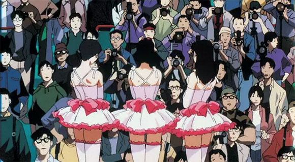 今敏曾经说过,他最大的兴趣之一便是描述“粉丝和偶像之间的关系”。在他的作品中,年轻美貌散发着青春的活力女性主人公很显然是作为“偶像”存在的。相对来说的“粉丝”,便是围绕在女主身边的“大叔”们了。