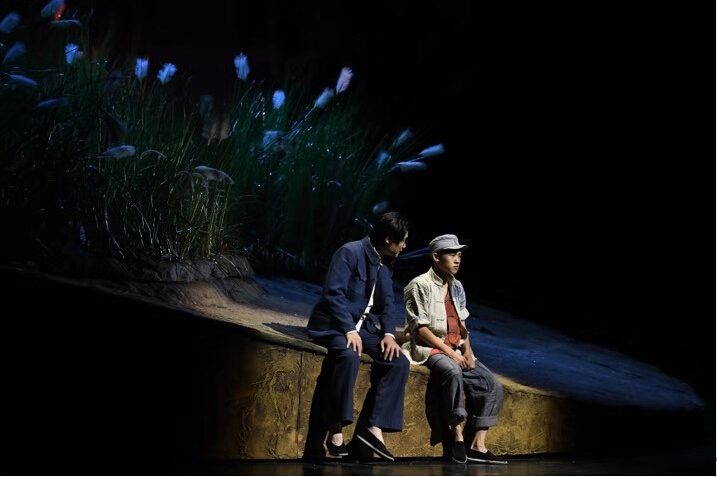 值得一提的是,《小英雄雨来》虽然是吉林艺术学院在戏剧艺术创作中首次尝试儿童剧题材的一部作品,但从艺术特征上来看,极具专业品相。该剧在剧情设计、语言表达、舞台表现、艺术创新等方面都有全新的尝试。具体表现在:舞美设计现代且简洁又不失厚重和灵动,电动转台的创意形成了舞台诺大的流动空间,给人以超越时空又返朴归真之感。同时,油画般的色彩基调,增加了浓厚的历史感和强烈的艺术感染力。该剧同时运用多媒体创意创作,采用投影空间增强现实技术,营造的逼真场景,虚实结合的演绎手法,打造了剧场沉浸式的视觉体验,舞台投影增强了虚实交错、亦真亦幻的空间更迭,展现了多元化的视听效果,使舞台更具生机并富有活力。此外,音乐的创作与剧情的展现自然贴合,符合剧情人物的情绪走向,契合故事脉络的艺术情境。主题歌朗朗上口又极具叙述感,旋律简洁明快又意味深长。音乐在剧中的呈现,不仅是衬托和铺陈,更成为全剧不可或缺又不可多得的艺术元素。