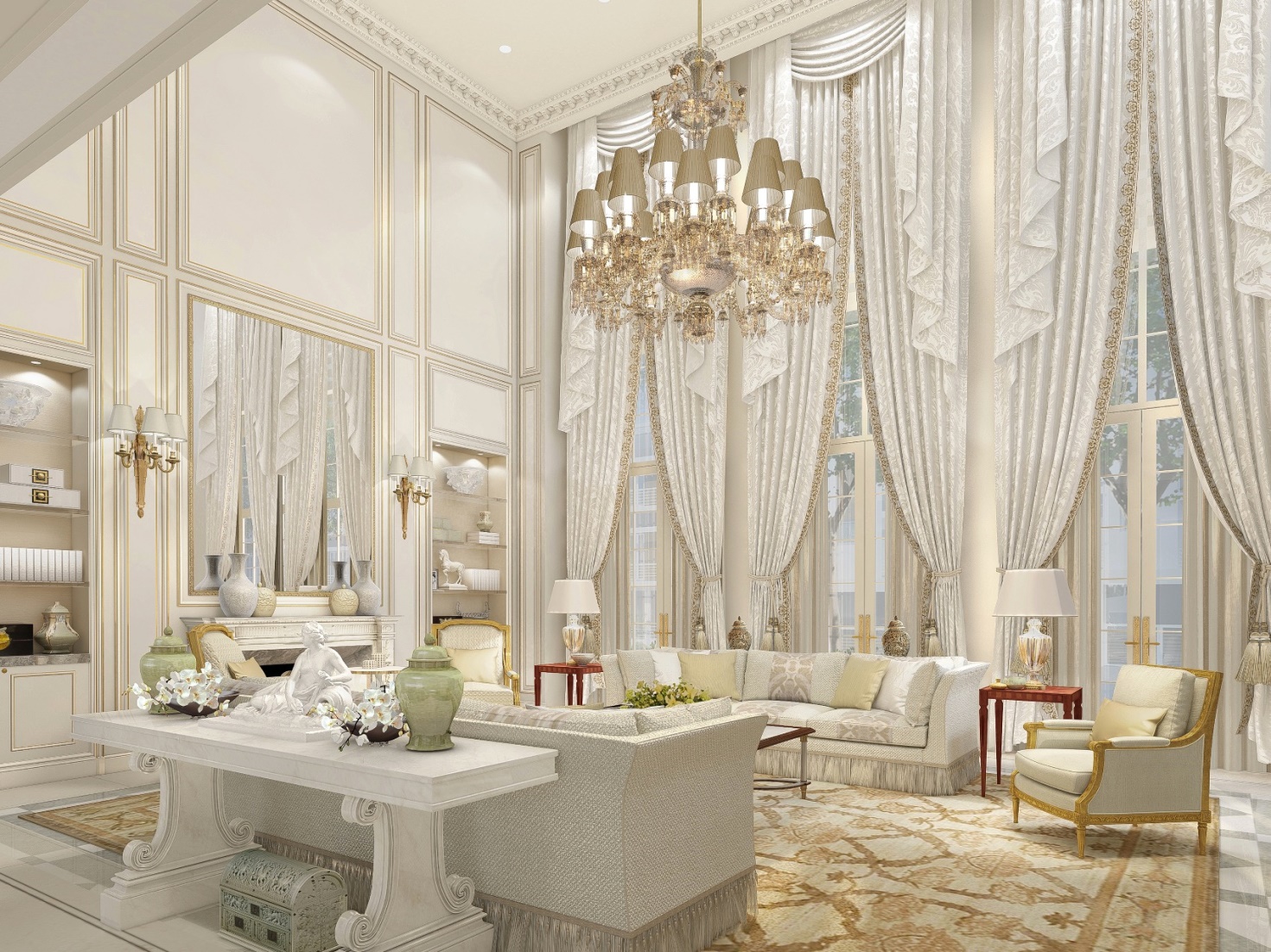 无论是在多么精密的摄影镜头下,庄园的细腻匠心依然无懈可击。填充顶级鹅绒的POZZOIL家具,欧洲皇室御用的CHESNEY’S壁炉,米其林星级厨房专享的GAGGENAU厨用电器,为庄园单独开设生产线的SAYYAS铜包木门窗,与卢浮宫同质的手工木饰面板,法国工匠现场雕刻的白色浮雕,纯铜铸造的旋梯扶手……凡此种种,更加印证了Pierre-YvesRochon大师非凡品位。