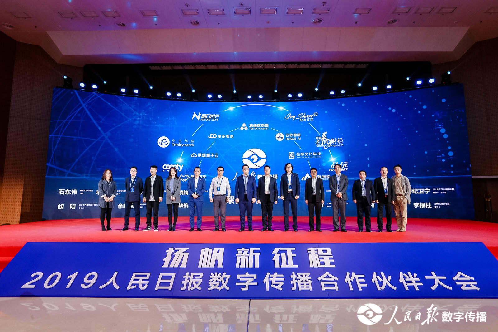 人民日报数字传播有限公司与京东数科、深圳云歌、启迪区块链、良鑫科技、小土科技、此时此地、PingWest品玩、明日世界、环球老虎财经、名赫文化科技、悦享环球、思源教育签订战略合作协议。来自全国各地150多家政府、企业代表出席本次合作伙伴大会。