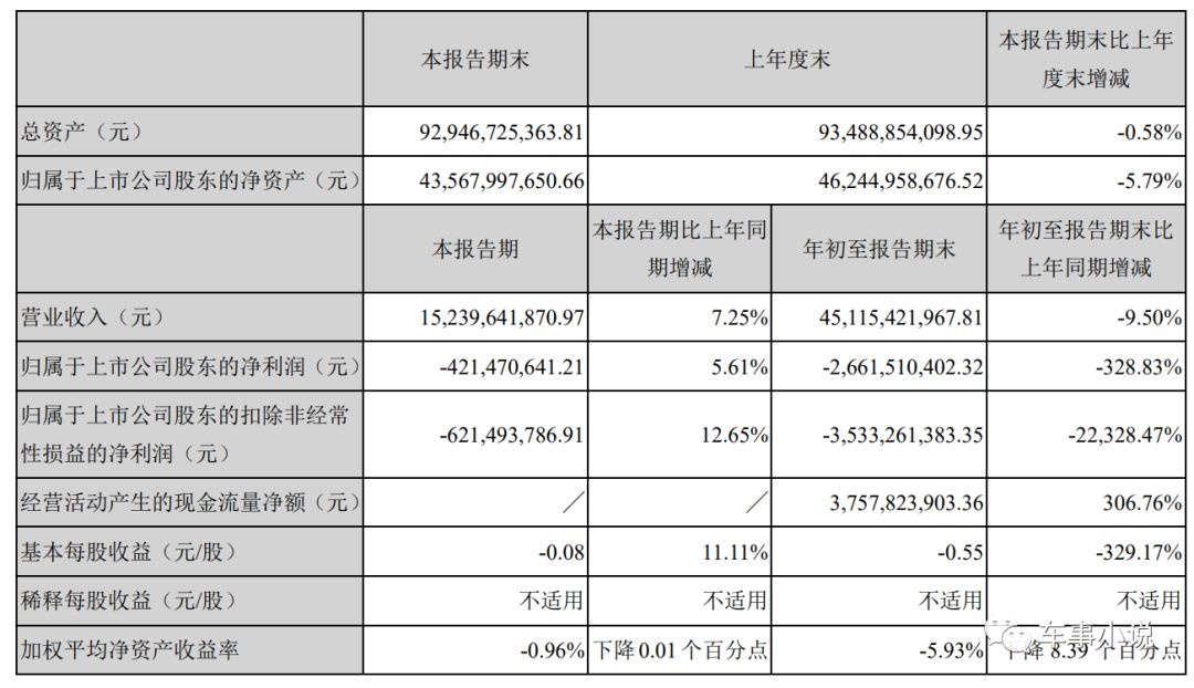 据长安汽车2019年三季度报显示,其前三季度累计营收为451.15亿元,同比下跌9.5%;前三季净利润亏损高达26.62亿元,同比暴跌328.83%。