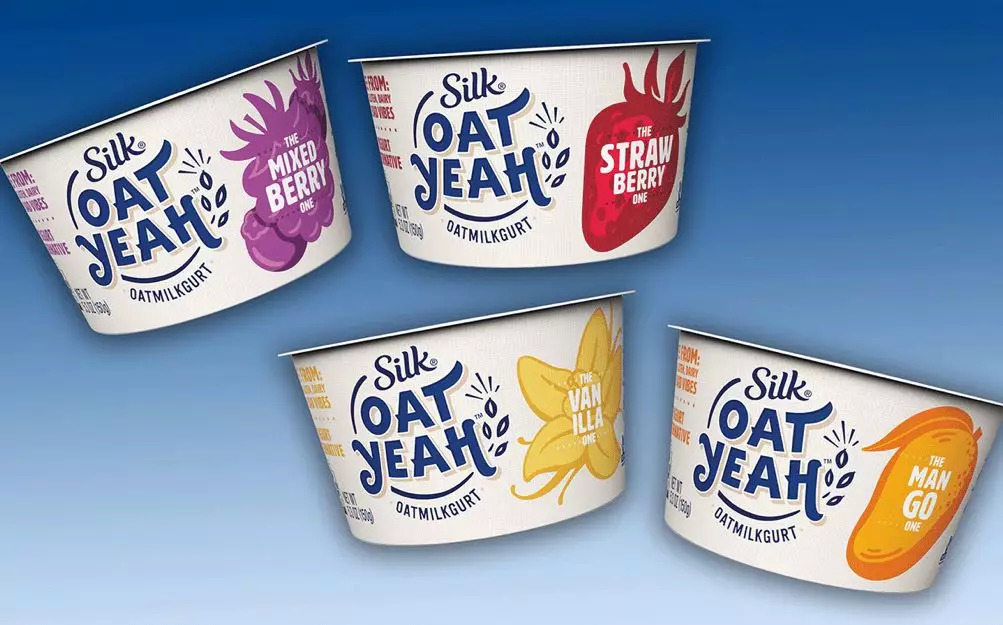 随着燕麦奶的上市,产品一度收到市场的好评,自然而言的下一步就是酸奶了。今年7月,Silk将其燕麦奶产品延伸到了酸奶系列,推出了不含乳的燕麦酸奶Oat Yeah Oatmilkgurt,将燕麦与活性益生菌发酵相结合,为消费者提供了丝滑可口的酸奶口感。新品有香草、混合浆果、草莓和芒果4种口味可供选择,均无麸质、无坚果、无牛乳、不含大豆、非转基因,适合更广泛的消费者群体。