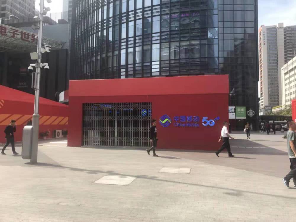 在网友“指路”下,懂懂笔记来到位于华强北大街上的一个5G网络体验展厅。然而,靠近振华路一侧的三间大红色体验厅,却有两间铁门紧闭,只有联通的体验厅开放着。