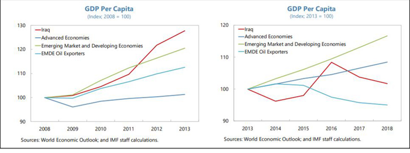 石油是伊拉克经济的支柱性来源,占政府收入的近90%,但政府预算中近一半都被用于支付公务人员。