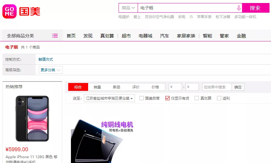 但是各大电商平台反应不一。目前,苏宁和国美的电商平台已经搜索不到电子烟产品,但截至今天上午7时,天猫和京东依然可以正常浏览购买。