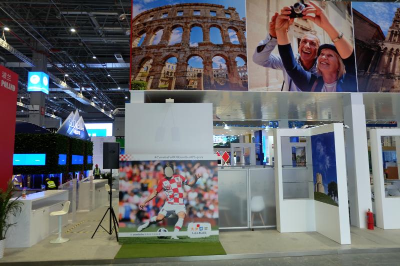 解放日报·上观新闻还发现,国家馆中的足球元素同样丰富。葡萄牙、阿根廷、克罗地亚等都把“足球场”搬到了场馆内,方便参观者拍照打卡,或许将成为“网红展台”。更有趣的是,“足球大国”西班牙国家展台还布置了整整一面“球服墙”,皇马、巴萨,以及武磊所在的西班牙人等知名球队也在其中展示。