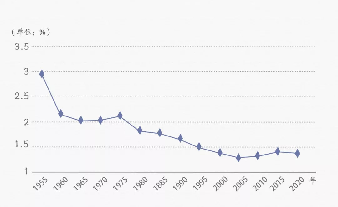 2018年,日本的生育率(育龄女性平均生育子女数)下降到1.42,早就远远低于完成正常人口替换的2.1了。而这个数字在战后恢复期的1947年,曾高达4.54。