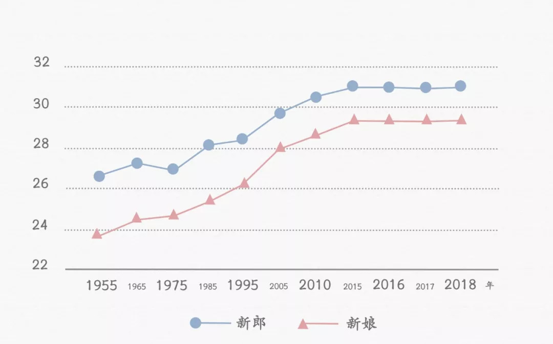 2018年,日本的结婚率是7.2‰,已经是连续第六年降低,达到二战以来的最低水平。