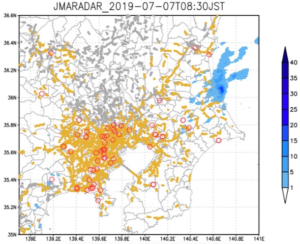 在验证实验中,通过将丰田提供的车辆雨刮器运行状态“分布图”与实际当地天气分布图进行对比。由于雨刮器的运行状态通常与降雨量正相关,因此这项数据对比可以发现云雨雷达所检测不到的潜在降水天气。
