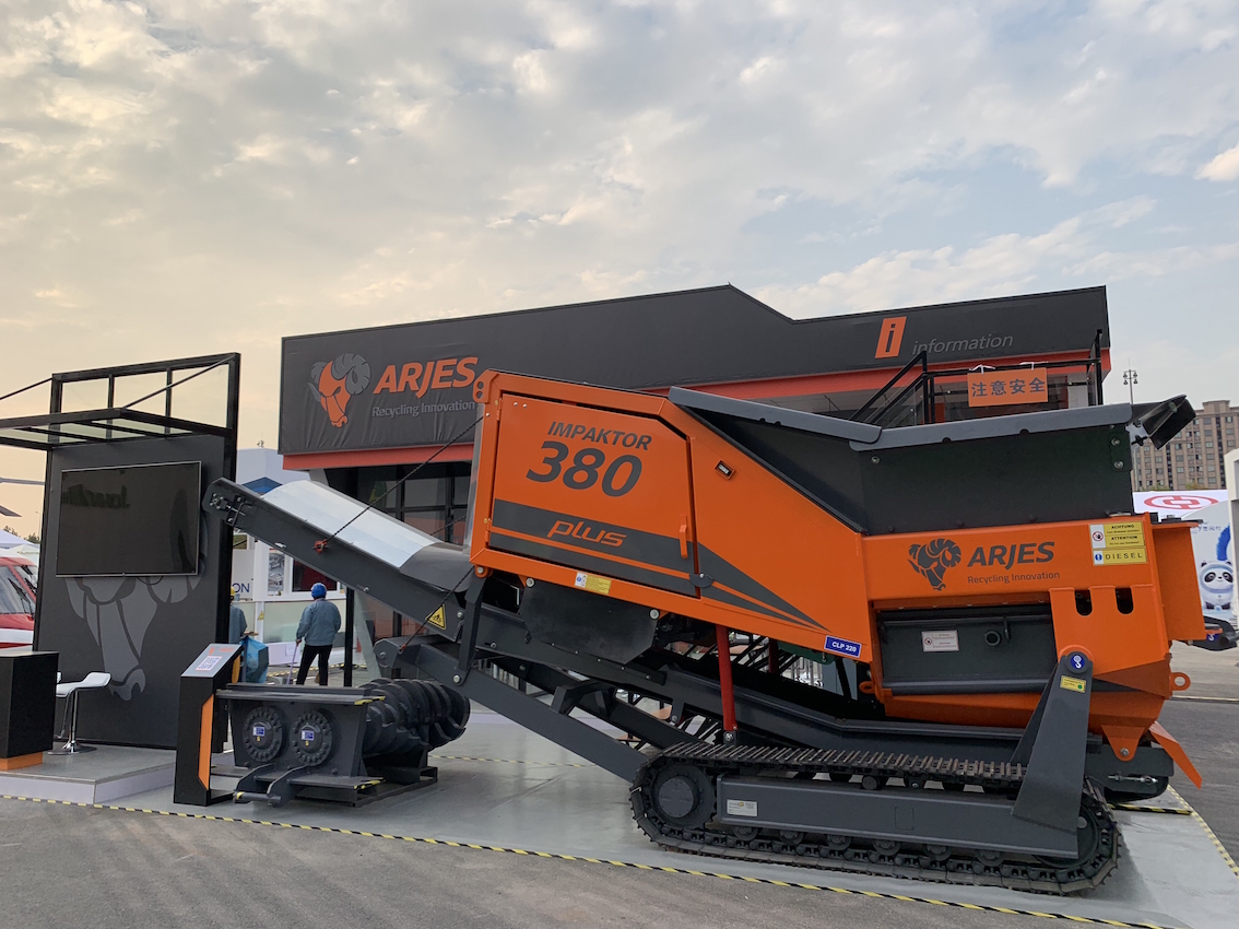 走到新增的室外展区,可以看到本届进博会中最大的环保装备制造产品——德国老牌建筑垃圾粉碎设备生产厂家阿吉斯带来的IMPACKTOR 380 PLUS。其展览面积为100平方米。