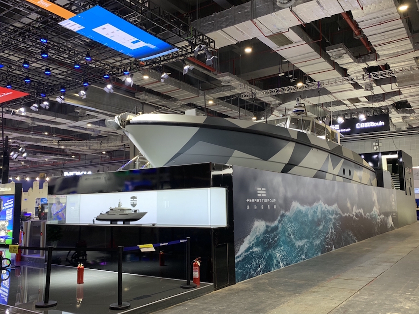 走进4.1馆的中心区域,可以看见欧洲第一大豪华游艇设计制造公司意大利法拉第集团带来的最新型号FSD195公务快艇。