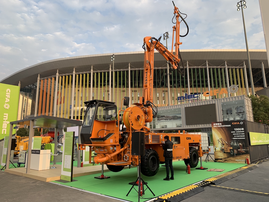 同样值得关注的,还有来自意大利的混凝土机械制造商CIFA带来的最先进喷射机械手。这是一款隧道施工设备,可用电动机和柴油机双动力进行喷射作业,同时运用了全球首创九个自由度的机器人臂架系统,无喷射死角。