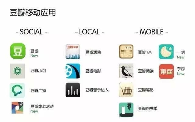 但实际上,这一套复制PC端策略的打法在移动端却失效了。不断被拉长的产品线和遍地开花的APP,不仅没有拓展豆瓣的受众群,反而将原本聚拢在一起的用户进行分割,丧失了用户与平台高度粘连的优势。豆瓣疲于面对多个垂直领域的对手,甚至还要直面BAT的挑战。
