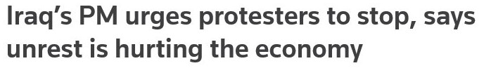 因民众对经济困难和腐败不满,10月初以来,首都巴格达和该国南部地区爆发抗议活动,已造成250多人丧生。