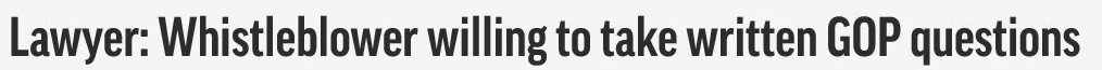 【“通乌门”举报人愿意接受共和党书面质询】周日“通乌门”举报人的律师马克·扎伊德表示,举报人愿意以书面形式直接回答共和党议员提出的问题。正是由于该举报人的举报,引起了人们对特朗普总统处理乌克兰问题的警惕,并引发了民主党主导的弹劾调查。