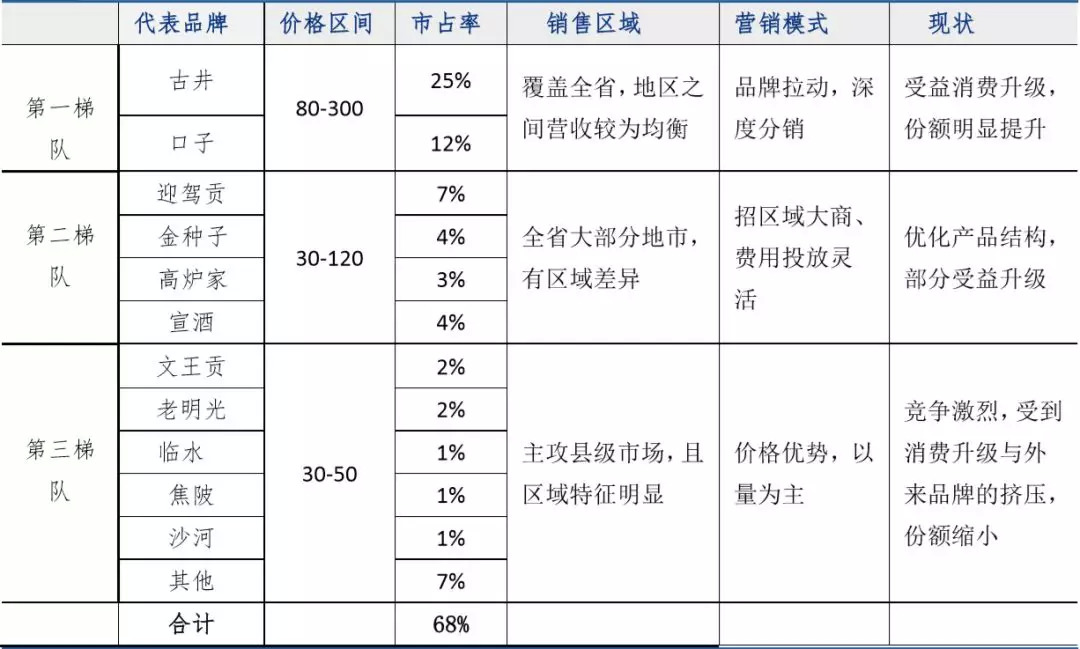 ▲2018年安徽本土白酒品牌三大阵营划分(资料来源:长城证券)
