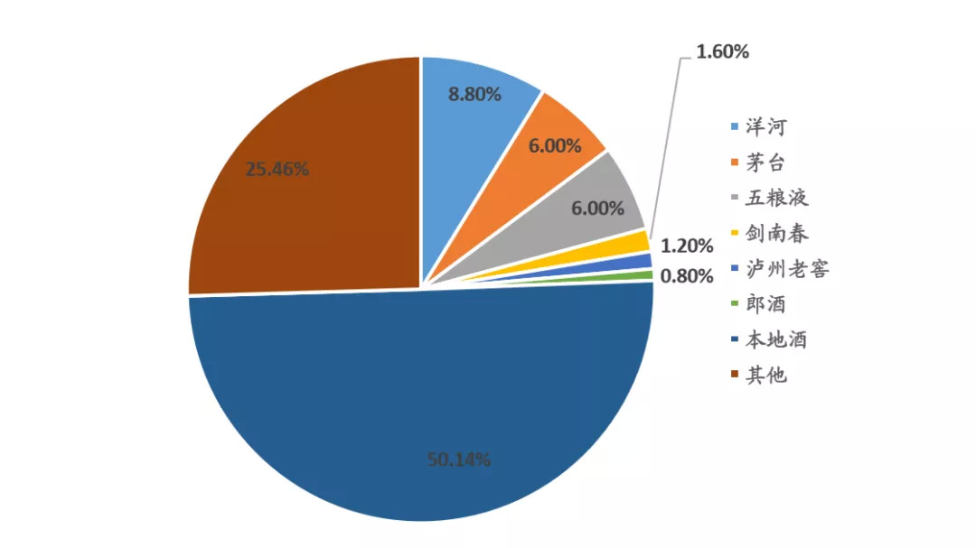 ▲2018年各白酒品牌在安徽省占比情况(销售额,数据来源:草根调研、东北证券)