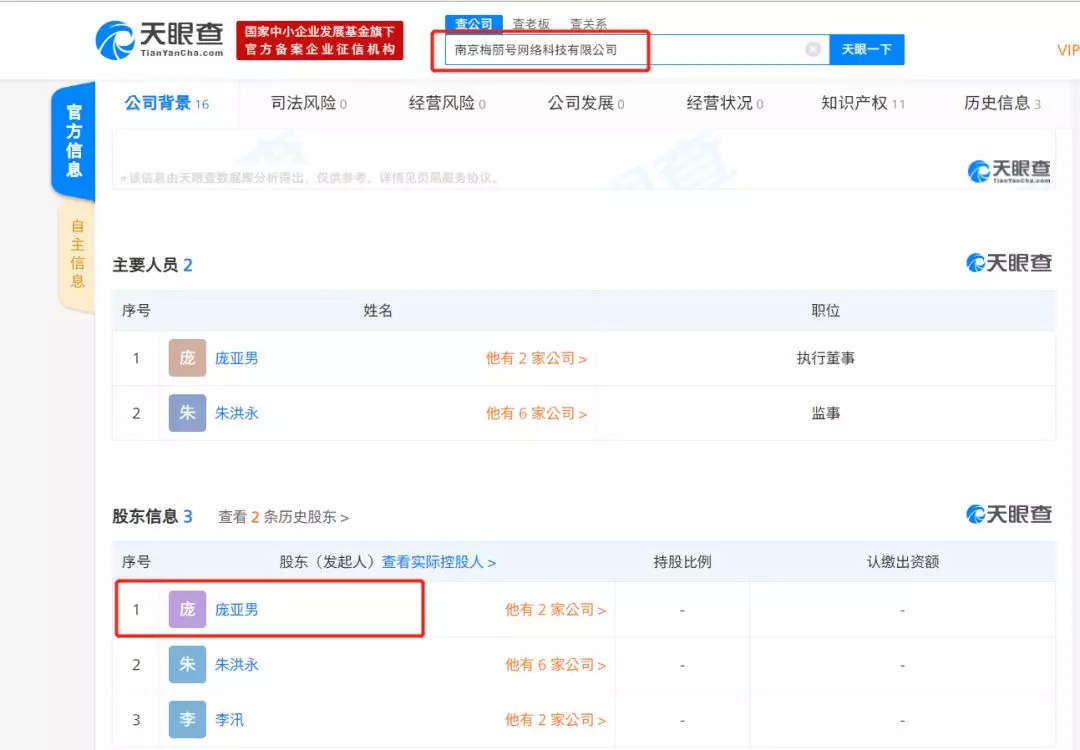 天眼查数据显示,“南京梅丽号网络科技有限公司”的法人代表正是果酱文化总裁庞亚男,公司其余两位股东也是果酱文化控股集团的董事。值得注意的是,以上4个小程序的注册时间都是今年的4月份,再加上匆忙上马的设计和换汤不换药的功能,一切都与庞亚男口口声声讨伐的“野榜”的描述不谋而合。看来在利益诱惑面前,多做几个野鸡榜收割流量,似乎是比保持专业水平更重要的东西。