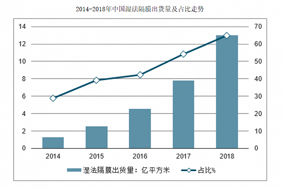 据《2019-2025年中国湿法隔膜行业市场竞争现状及未来发展趋势研究报告》中指出,由于湿法隔膜的技术性优势,湿法隔膜产量会逐年提升并逐渐成为主流,替代干法隔膜的趋势逐渐清晰。