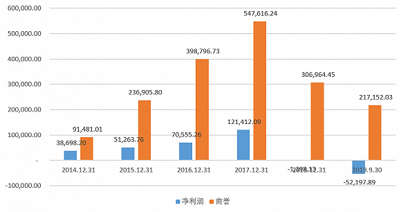 长园集团的业绩表现之所以呈现这种起落态势,与公司持续不断收购且标的业绩不及预期大有关系。2018年的亏损,主要原因就是商誉的减值。