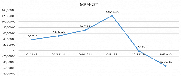 长园集团的主营业务主要包括:工业及电力系统智能化以及电动汽车相关材料及其功能材料业务。今年前三季度,公司实现营业收入42.15亿元,同比下降21.98%;净利润亏损5.21亿元,同比下降141.48%。事实上,这家公司净利润自2017年达到12.14亿元之后 ,便开始向下俯冲。