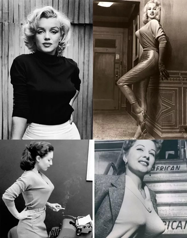 影视方面就更是如此,当红的好莱坞女星,各个标配傲人双峰,她们穿着风靡一时的羊毛衫和三角胸罩,被称为 Sweater Girl(羊毛衫女孩)。