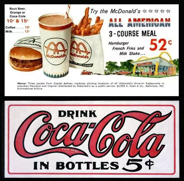 当时麦当劳套餐也不过 52 美分的价格,一杯可乐才售 5 美分。