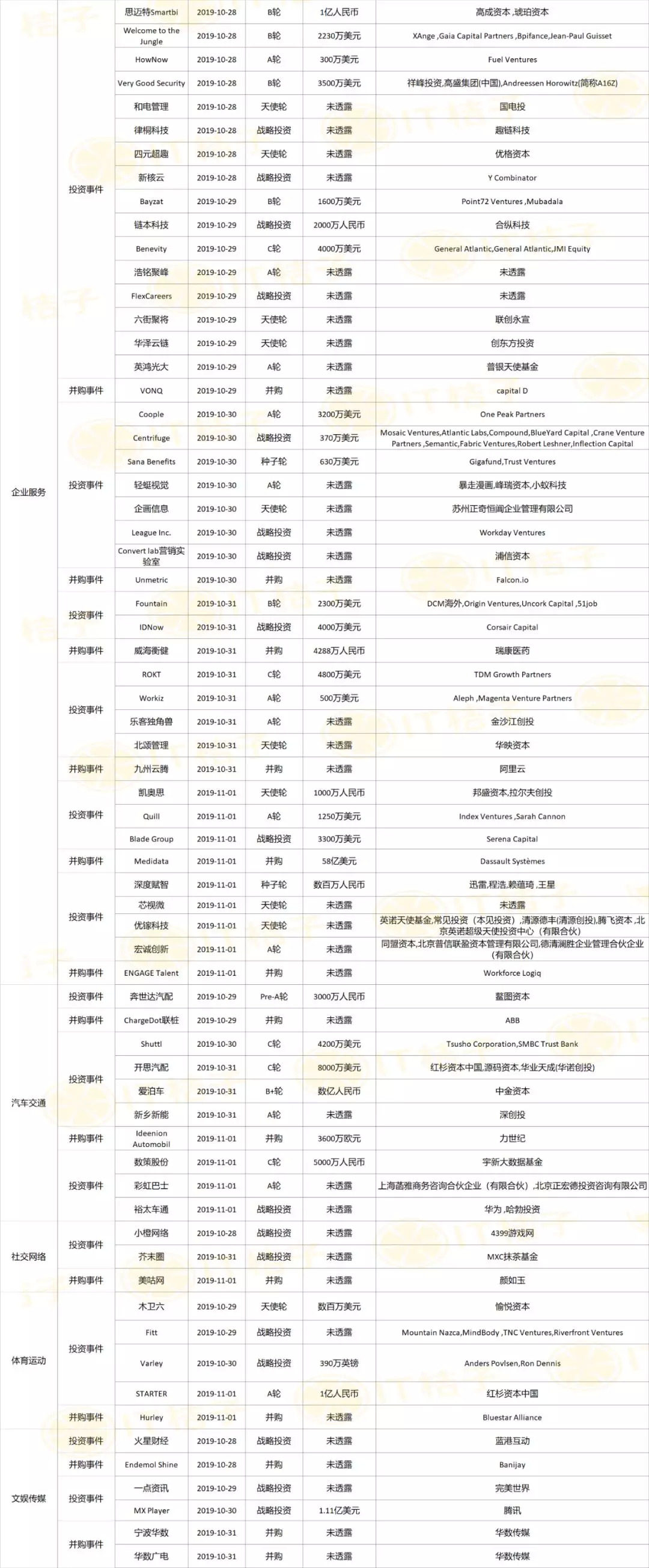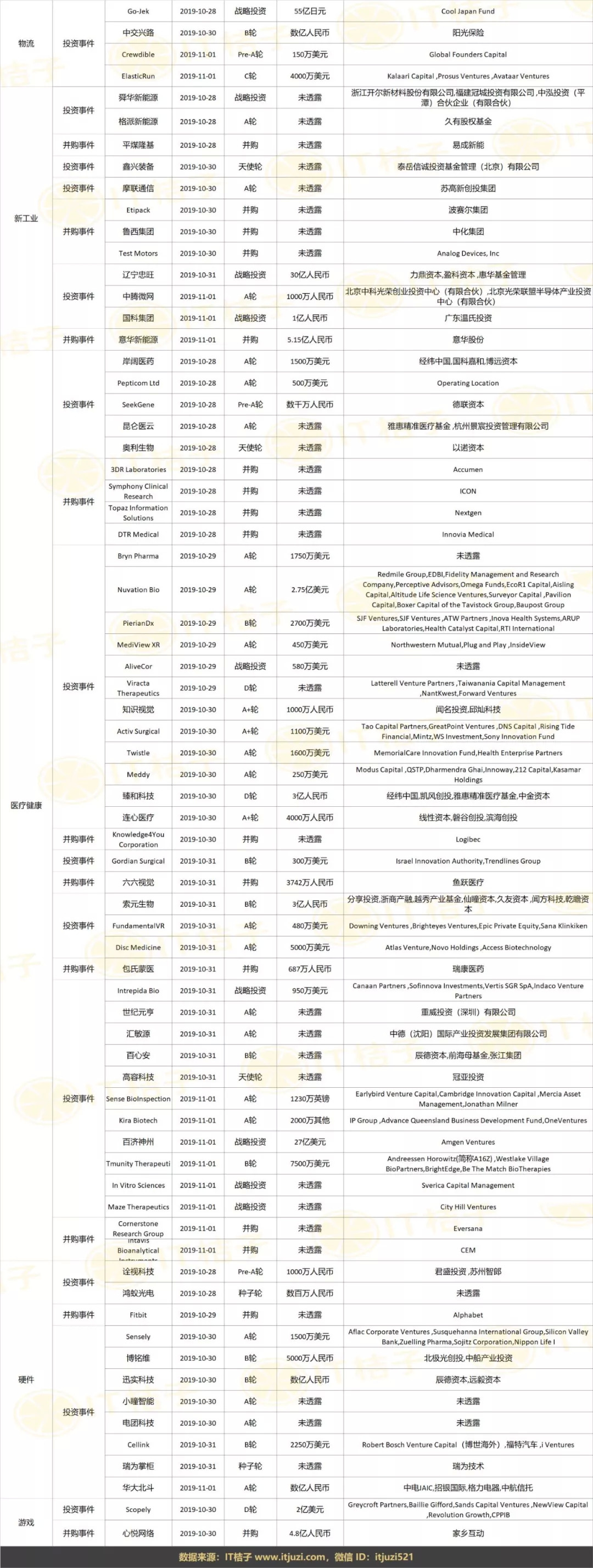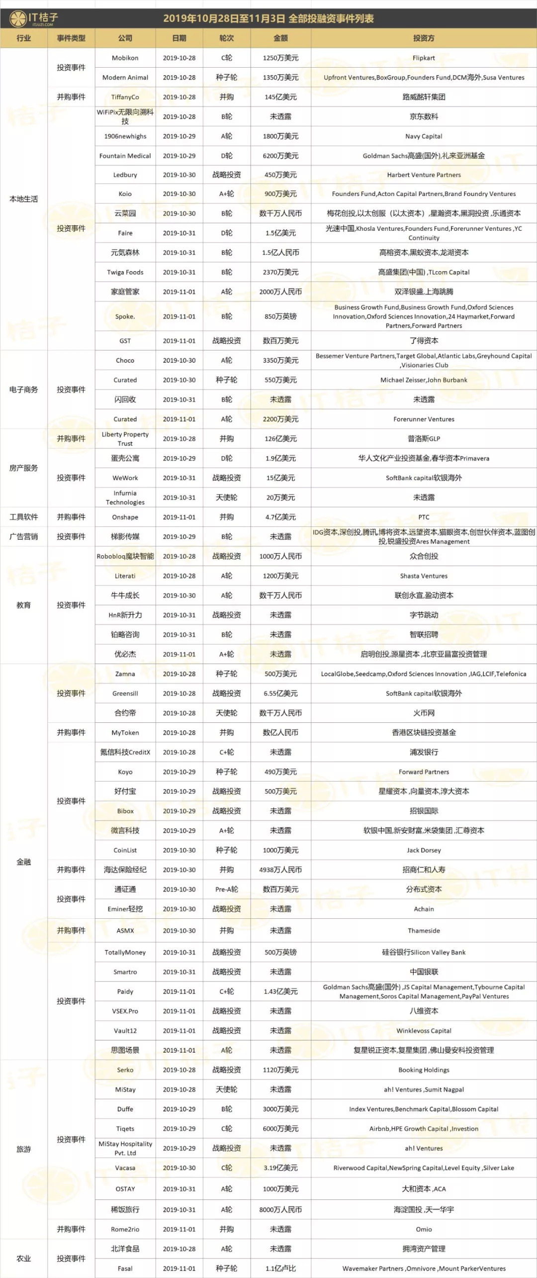 上周全部投融资事件列表:
